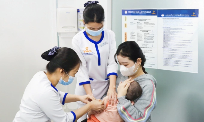 Trẻ nhỏ được chích ngừa sởi tại Trung tâm tiêm chủng VNVC. Ảnh: An Hoa