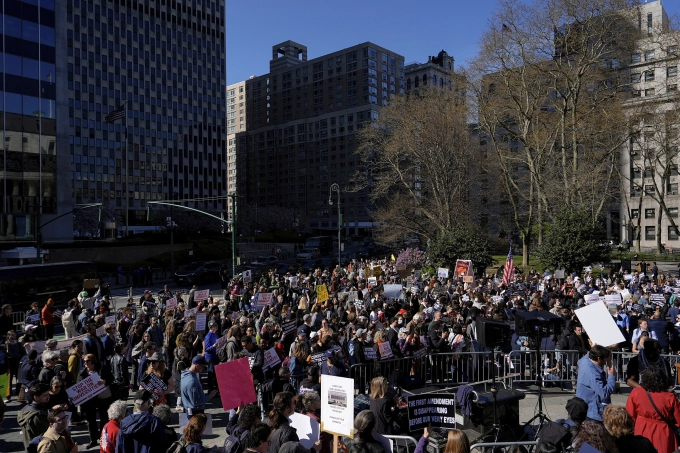 Biểu tình tại quảng trường Foley,New York,ngày 17/4. Ảnh: AP