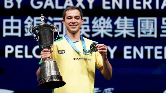 Calderano nhận World Cup bóng bàn tại nhà thi đấu Galaxy,khu Lộ Đãng Thành,Macau,Trung Quốc tối 20/4/2025. Ảnh: ITTF