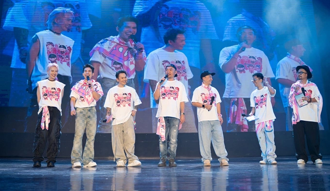 Từ trái sang: Duy Khánh,Quốc Thiên,Binz,Tiến Luật,Tiến Đạt,Rhymastic,Hà Lê của Nhà Trẻ. Ảnh: Nhân vật cung cấp