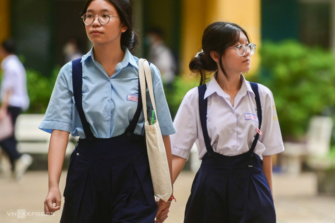 Thí sinh dự thi lớp 10 tại THPT Trưng Vương,quận 1,tháng 6/2024. Ảnh: Quỳnh Trần