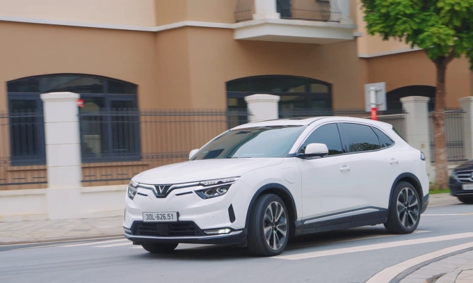 Ôtô điện VinFast VF 8 trên đường phố. Ảnh: Quang Anh