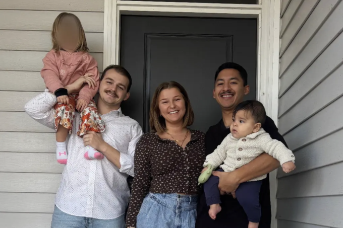 Megan Meyer cùng chồng và con trai (bên trái) sống chung nhà với chồng cũ và con gái riêng (bên phải) ở Hilton Head,Nam Carolina,Mỹ. Ảnh: Megan Meyer / SWNS
