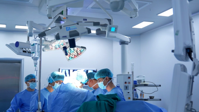 Êkíp bác sĩ phẫu thuật cho ông Vũ. Ảnh: Bệnh viện Đa khoa Tâm Anh