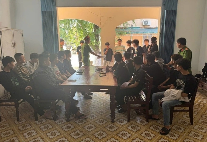 Hai nhóm thanh thiếu niên tại cơ quan điều tra. Ảnh: Công an cung cấp