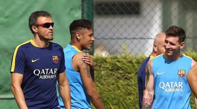 HLV Luis Enrique (trái),Neymar và Lionel Messi khi còn phụng sự Barca. Ảnh: Sport