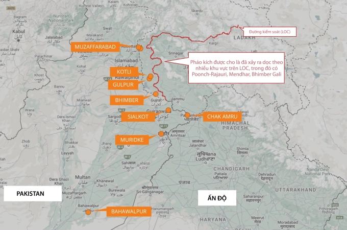 Các khu vực mà Ấn Độ tập kích trong chiến dịch Sindoor. Đồ họa: X/detresfa