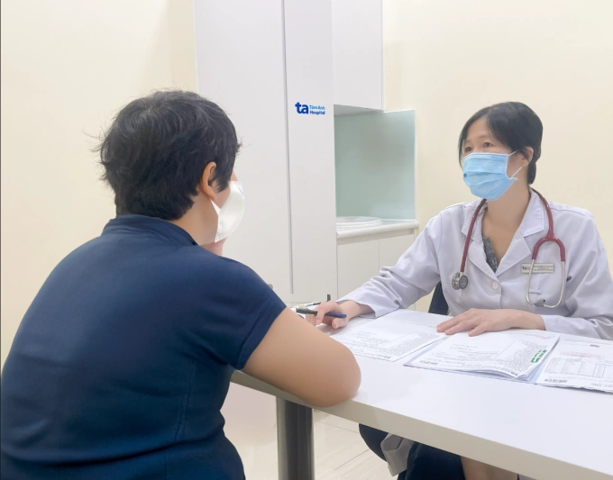 Bác sĩ Hà tư vấn cho chị Trinh. Ảnh: Bệnh viện Đa khoa Tâm Anh