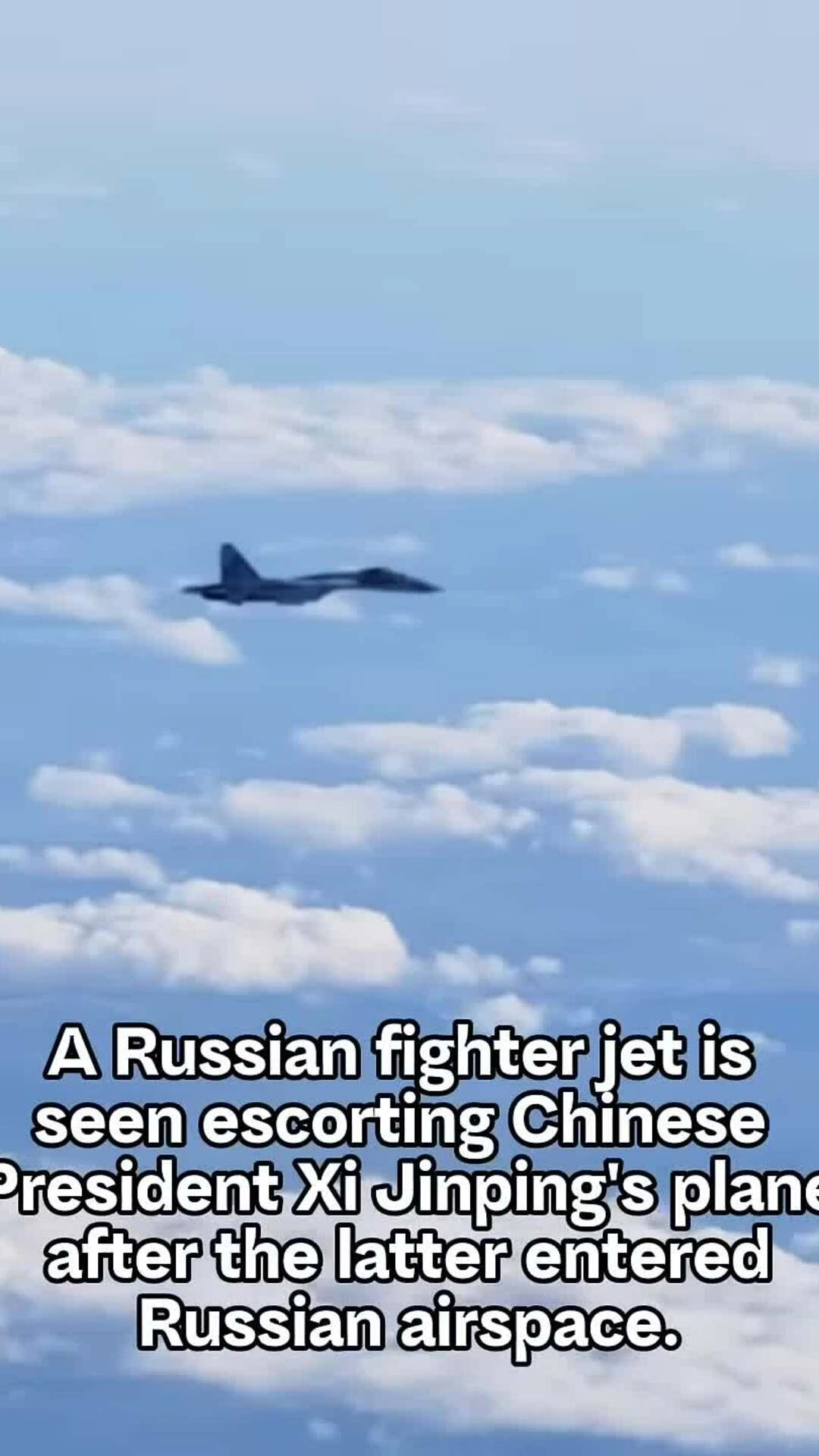 Video do hãng thông tấn Xinhua của Trung Quốc đăng được quay từ cửa sổ máy bay chở Chủ tịch Tập Cận Bình hôm 7/5,cho thấy tiêm kích Su-35 Nga bay song song với chuyên cơ. Tiêm kích làm nhiệm vụ hộ tống ngay sau khi chuyên cơ chở ông Tập đi vào không phận Nga và trước khi nó hạ cánh xuống sân bay quốc tế Vnukovo ở Moskva.