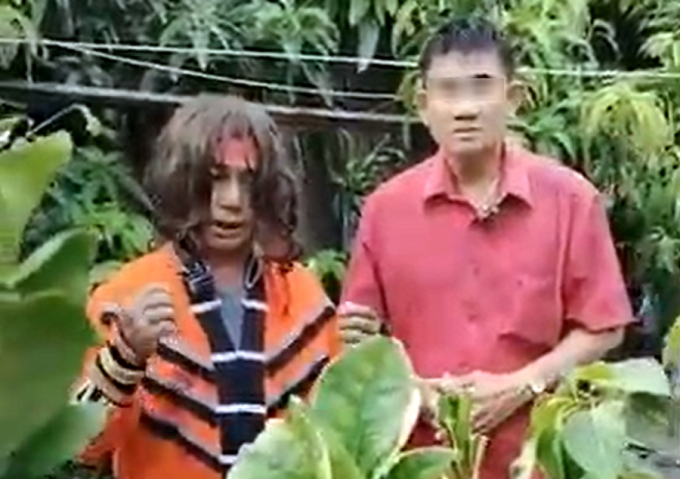 Đoạn clip ghi lại cảnh người đàn ông đóng vai thần chết xúc phạm người khác. Ảnh chụp màn hình