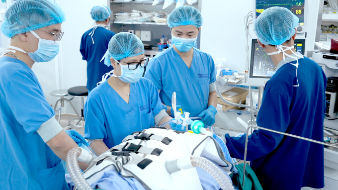 Bác sĩ tiến hành rửa phổi cho anh Hùng. Ảnh: Bệnh viện Tâm Anh