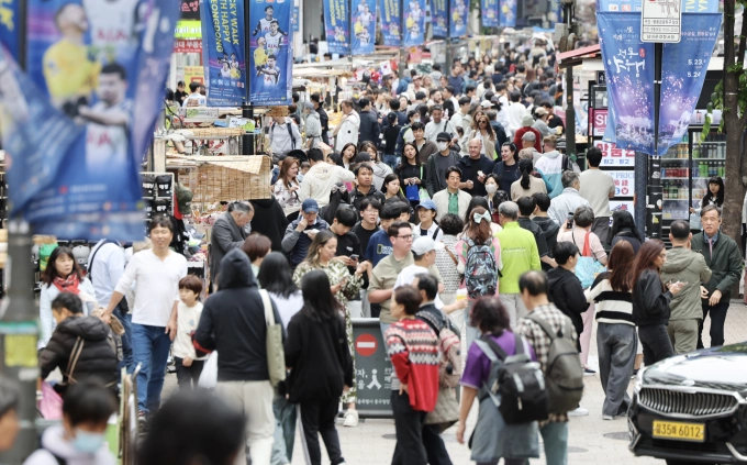 Người dân đổ xô đến các đường phố của Myeong-dong ở quận Jung,trung tâm Seoul,ngày 6/5. Ảnh: News