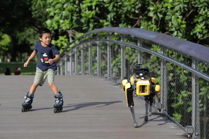 Hồi năm 2020,chó robot Spot được triển khai ở công viên Bishan-Ang Mo Kio để ước tính lượng người trong công viên qua cảm biến,nhắc nhở họ tuân thủ các biện pháp giãn cách Covid-19 bằng thông điệp ghi âm sẵn,phát qua loa.
