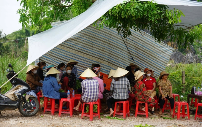 Người dân xã Đông Nam sáng nay vẫn tập trung ngăn xe vào bãi rác Đông Nam. Ảnh: Lam Sơn