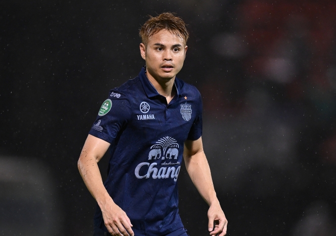 Theerathon Bunmathan trong trận Buriram United thắng BG Pathum United 3-0 ở bán kết Thai FA Cup 2024-2025,tại sân Ratchaburi,Thái Lan ngày 11/5/2025. Ảnh: BU