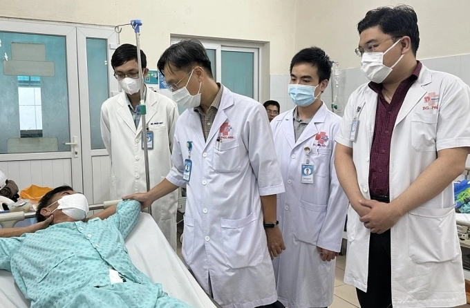 Các bác sĩ thăm khám bệnh nhân trước khi xuất viện. Ảnh: Trần Nhung