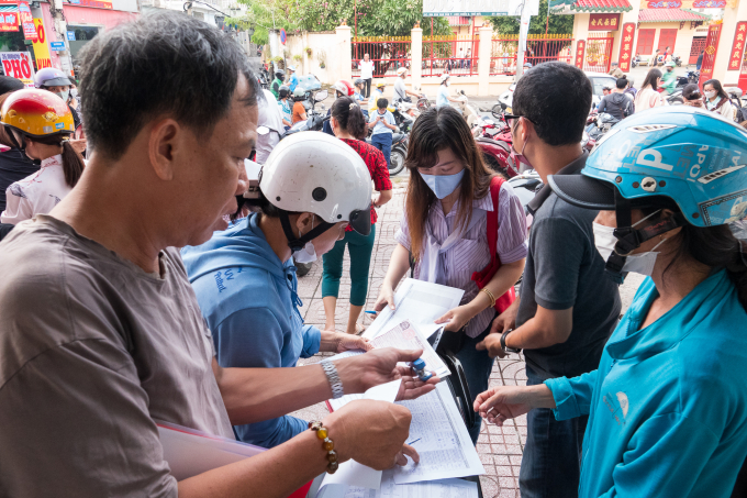 Phụ huynh tụ tập trước trung tâm AIES đường Kha Vạn Cân,chiều 15/5. Ảnh: Phụ huynh cung cấp