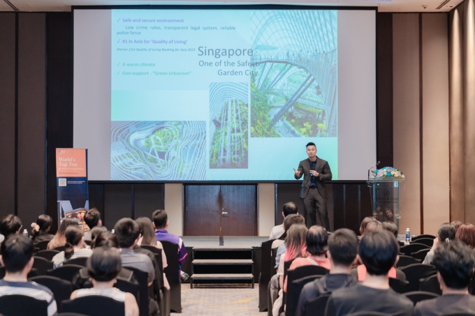 "NUS xét tuyển dựa trên quá trình đánh giá toàn diện. Để hồ sơ thêm mạnh,ứng viên nên tối ưu điểm số kỹ năng,tạo ấn tượng tốt trong mắt nhà tuyển sinh",ông Benjamin Tey nhấn mạnh.