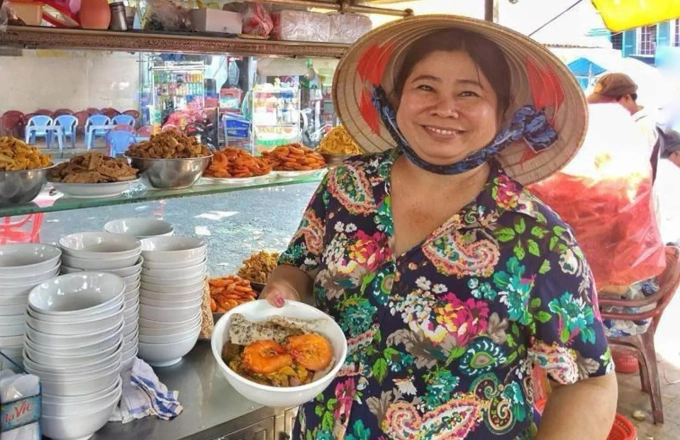 Bà Nguyễn Thị Thanh bán hàng tại quán ăn Lunch Lady ở quận Bình Thạnh. Ảnh: Instagram/thelunchlady
