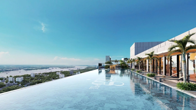 Phối cảnh hồ bơi Bình Minh vô cực tầng 40 The Gió Riverside. Ảnh: An Gia