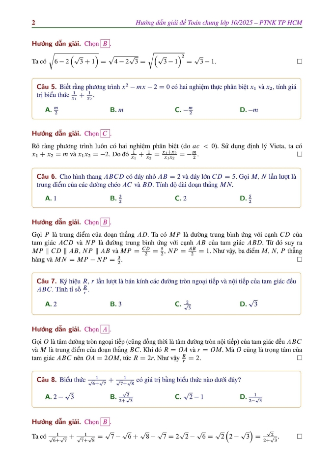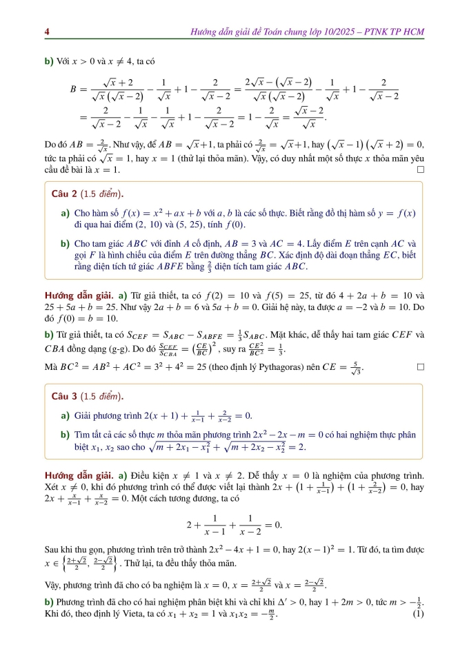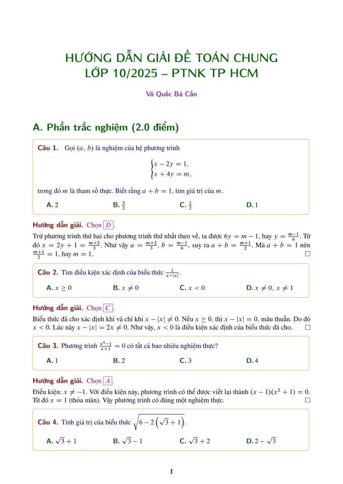 Lời giải đề Toán chung vào lớp 10 trường Phổ thông Năng khiếu