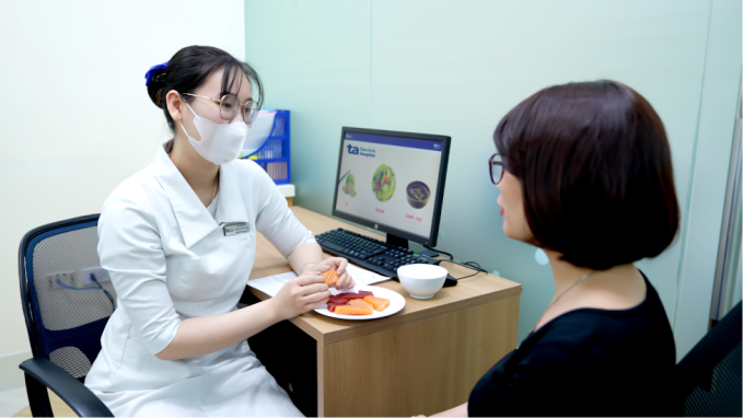 Chuyên viên dinh dưỡng Hồng Vân tư vấn chế độ ăn uống lành mạnh cho người bệnh. Ảnh minh họa: Bệnh viện Đa khoa Tâm Anh