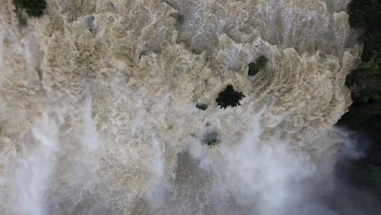 Đoạn video thu hút hàng nghìn lượt tương tác. Nhiều người lo lắng khi dòng nước lũ cuốn theo bùn đất,làm biến dạng cấu trúc 7 tầng thác Pongour.