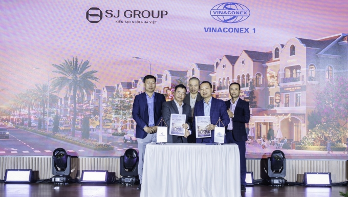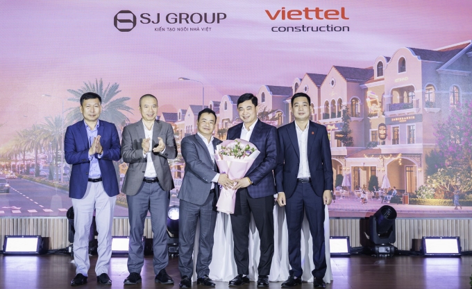 Đại diện SJ Group và Viettel Construction ký kết hợp tác triển khai thi công các hạng mục thấp tầng tại Vista Nam An Khánh. Ảnh: SJ Group
