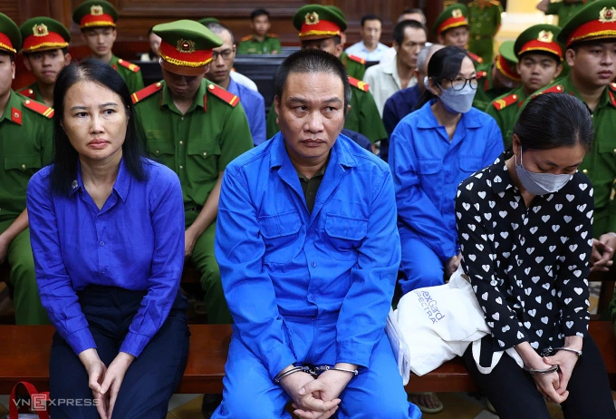 Bị cáo Hoàng Thị Thúy Nga và các đồng phạm tại tòa. Ảnh: Trần Quỳnh