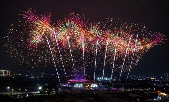 Màn trình diễn pháo hoa nghệ thuật chào mừng thành công Đại hội Đảng XIV sẽ diễn ra cùng với đêm nghệ thuật "Dưới lá cờ vẻ vang của Đảng",bắt đầu từ 20h ngày 23/1,tại sân vận động Mỹ Đình. Đêm diễn gồm ba chương,sau mỗi chương có màn trình diễn pháo hoa tầm thấp (giàn phun và hỏa thuật),kết thúc là 15 phút pháo hoa tầm cao.