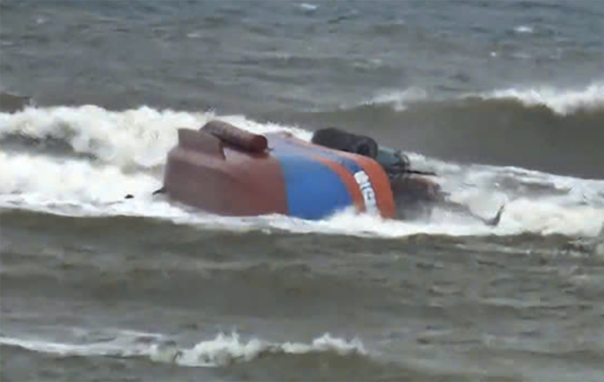 Tàu cá bị sóng đánh chìm trên biển Nhật Lệ. Ảnh: Đắc Thành