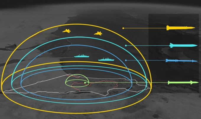 Lưới phòng không đa tầng bảo vệ lãnh thổ Israel. Bấm vào để xem chi tiết