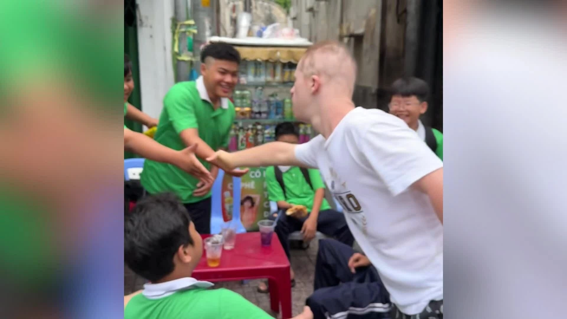 Ông bố Tây xúc động khi con trai bệnh Down được trẻ Việt chào đón