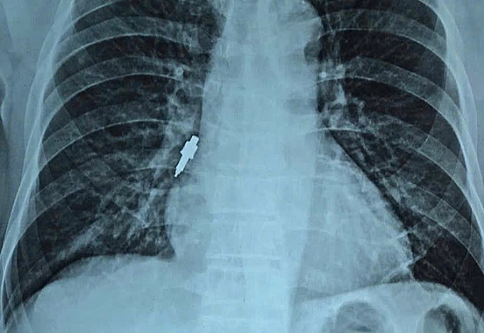 Hà Nội- Sau hai tuần cấy ghép implant tại phòng khám tư, người đàn ông 78 tuổi ho dữ dội, bác sĩ Bệnh viện Hữu Nghị phát hiện một dụng cụ kim loại kẹt sâu trong phế quản.